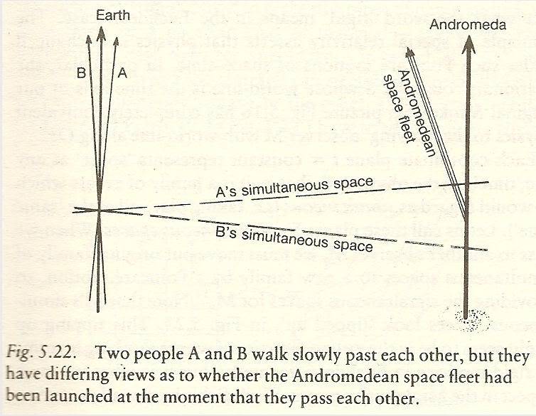 Così come sarebbe un caso che un andromediano in moto a una certe velocità si trovi simultaneo ad un evento qualsiasi della vita di Luna. E di certo non ne potrebbe essere consapevole.