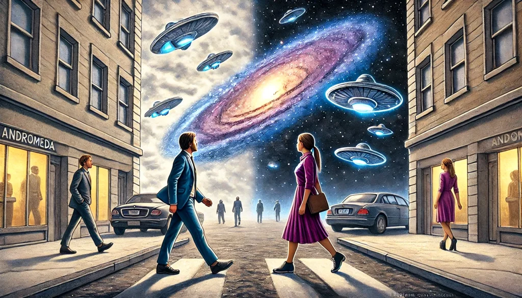 Un ipotetico andromediano col suo potente super telescopio potrebbe decidere, fra 2,5 milioni di anni, di osservare la Terra e seguire la vita di Luna come in un film. Ma sarebbe un caso, perché in nessun modo potrebbe essere al corrente della sua esistenza prima di 2,5 milioni di anni dalla sua morte.