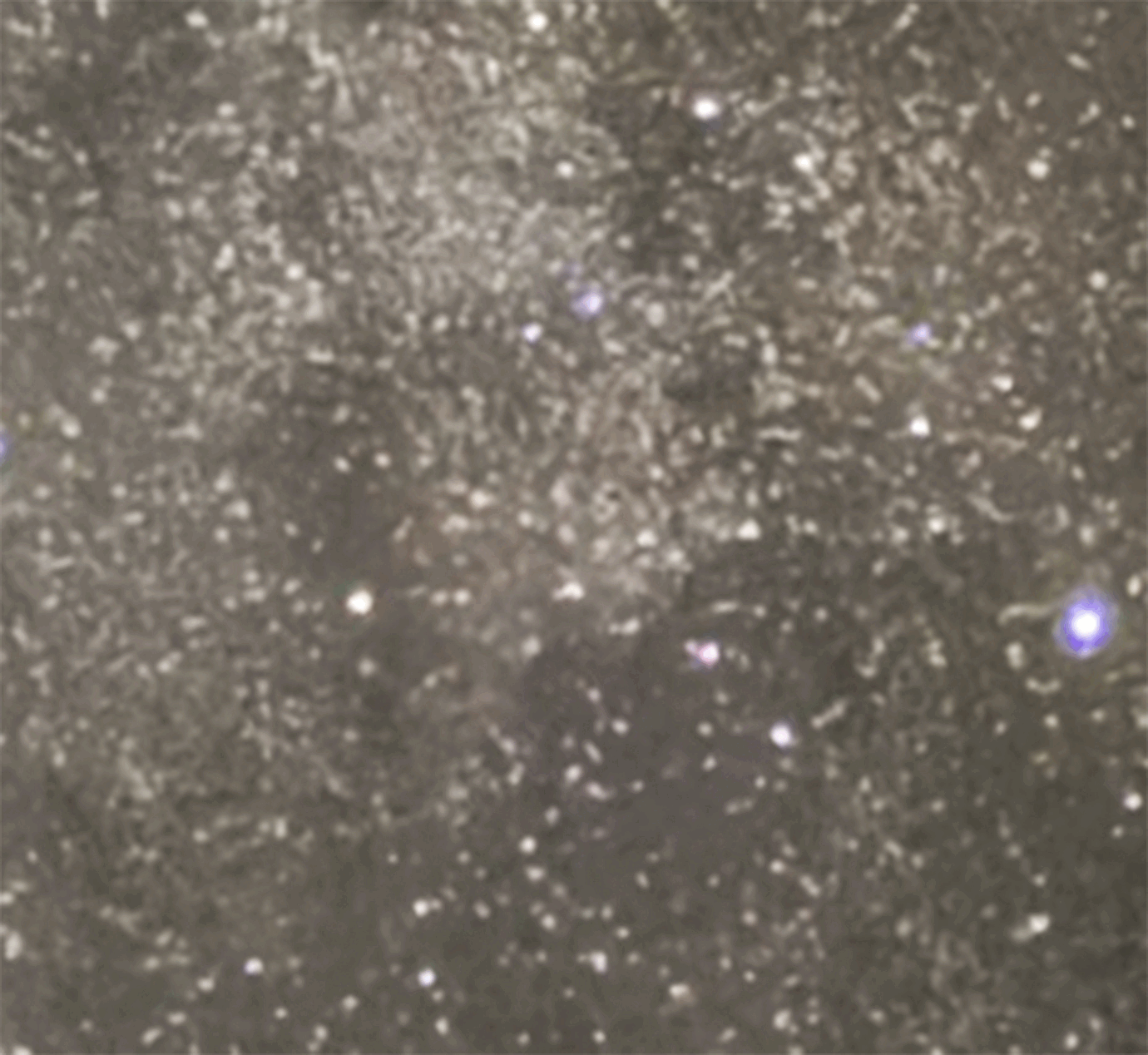 Come prima cosa ho notato chiaramente la Via Lattea, che si vedeva anche ad occhio nudo. Molto evidente in alto la Fenditura del Cigno, ovvero la parte più settentrionale della lunga fascia di nebulose oscure che attraversa Via Lattea. Poi, sul lato sinistro, una meteora, che in diretta mi ero perso.